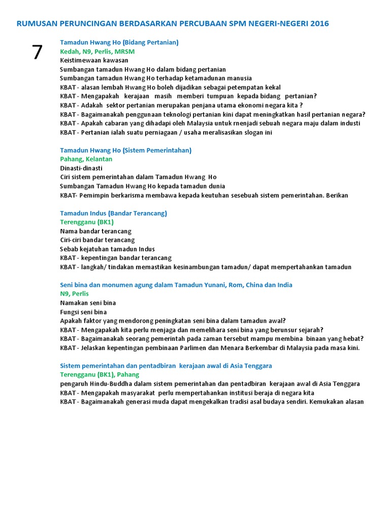 7 RUMUSAN PERUNCINGAN BERDASARKAN PERCUBAAN SPM NEGERI-NEGERI 2016 Tamadun Hwang Ho Bidang Pertanian Kedah N9 Perlis MRSM Keistimewaan kawasan Sumbangan tamadun Hwang Ho dalam bidang pertanian Sumbangan tamadun Hwang Ho terhadap ketamadunan manusia KBAT - alasan lembah Hwang Ho boleh. 1 TINGKATAN 4 BAB 1 KEMUNCULAN TAMADUN AWAL MANUSIA Bagaimanakah amalan sikap keterbukaan Indus dapat dicontohi dalam memajukan negara kita. Dec 24 2015 Sumber.