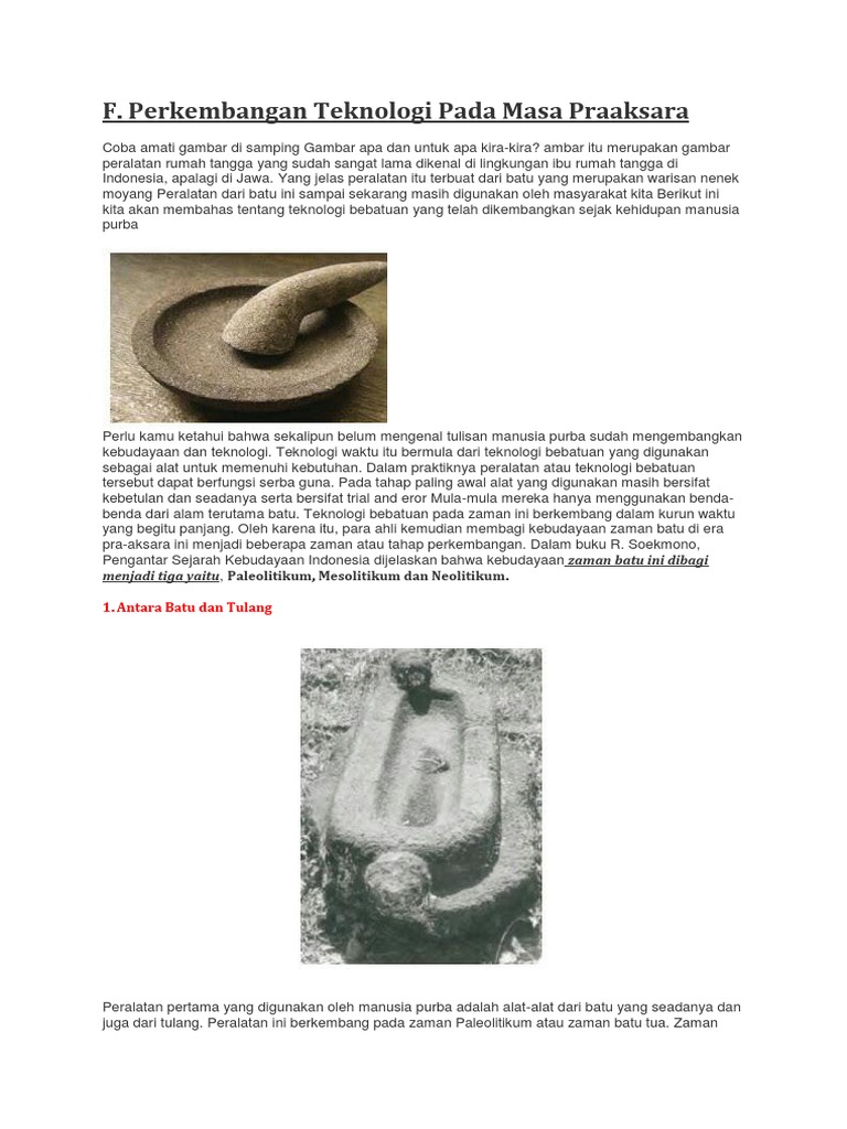 Teknologi waktu itu bermula dari teknologi bebatuan yang digunakan sebagai alat untuk memenuhi kebutuhan. Oct 08 2013 perbandingan ciri-ciri zaman prasejarah manusia pada zaman paleolitik neolitik dan logam tinggal di gua dan tempat yang berhampiran dengan sumber air. Perkembangan Teknologi Masa Praaksara.