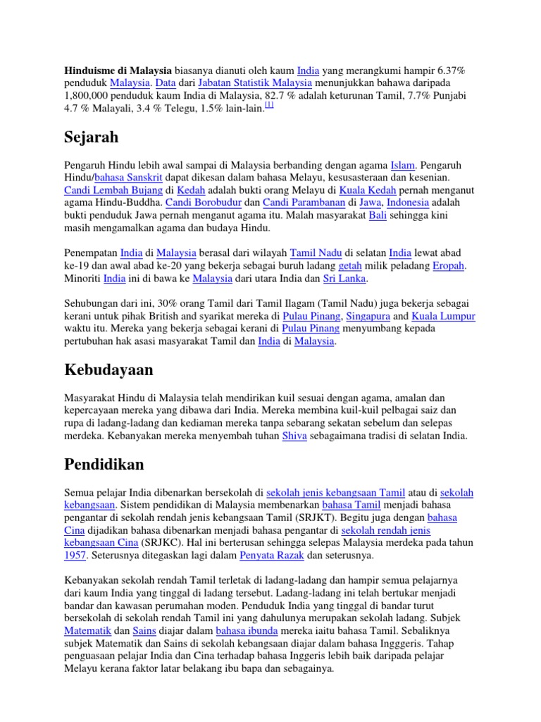 Hinduisme Di Malaysia Biasanya Dianuti Oleh Kaum India Yang Merangkumi Hampir 6