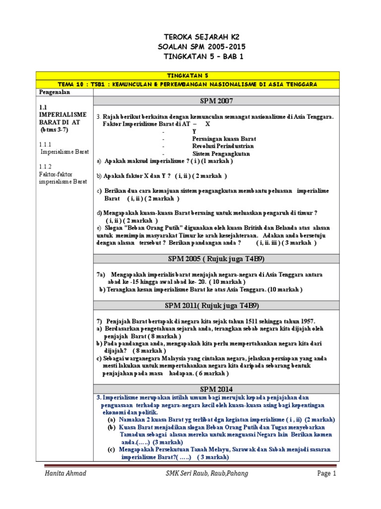 Saya nak tanya mengapakah negara kita menjadi sasaran kuasa kuasa barat hingga kini. Das ar sesebuah negara meluaskan pengaruh dan wilayah dengan menjajah negara lain. HIMPUNAN SOALAN DANJAWAPAN KBAT SEJARAH SPM 2 ISU PERPADUAN NASIONAL PERPADUAN KEBANGSAAN GAGASAN 1 MALAYSIA Dasar British telah menyulitkan proses mewujudkan perpaduan nasional selepas negara mencapai merdeka.