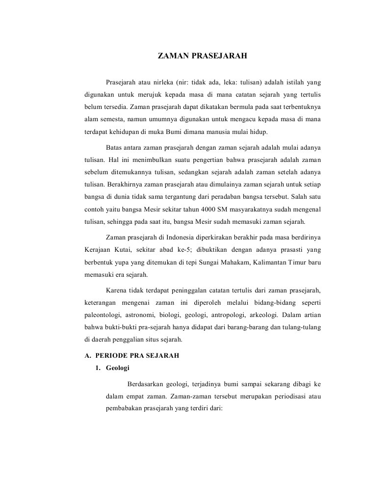 Mereka memburu dalam kumpulan kecil hasil buruan akan dikongsi bersama. Jan 08 2015 Zaman prasejarah yaitu zaman dimana manusia yang hidup pada zaman tersebut belum mengenal tulisan. Masa berakhirnya zaman prasejarah di Indonesia diperkirakan pada masa berdirinya kerajaan Kutai sekitar abad ke-5.