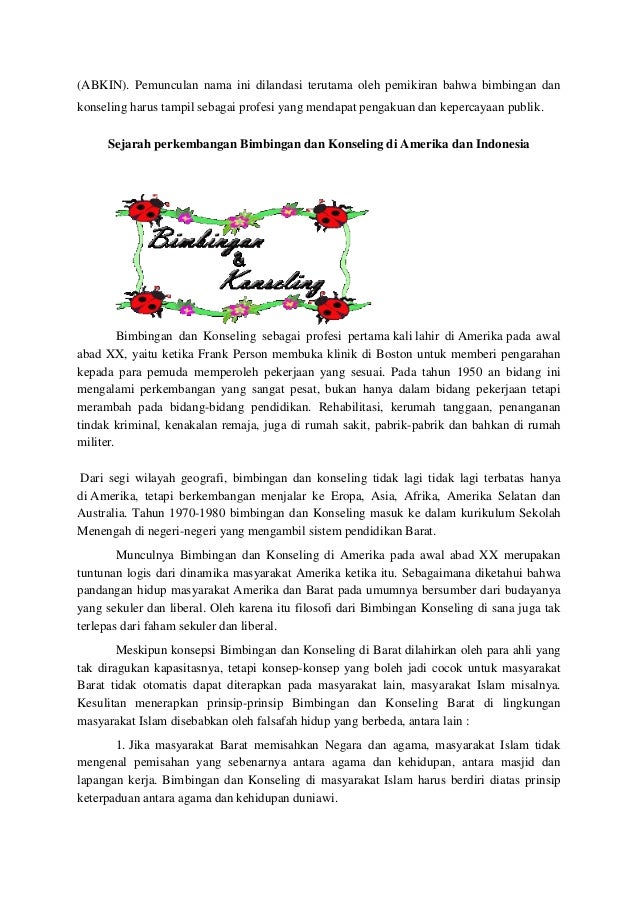 Sejarah Perkembangan Bimbingan Dan Konseling Di Indonesia Dan Di Amer